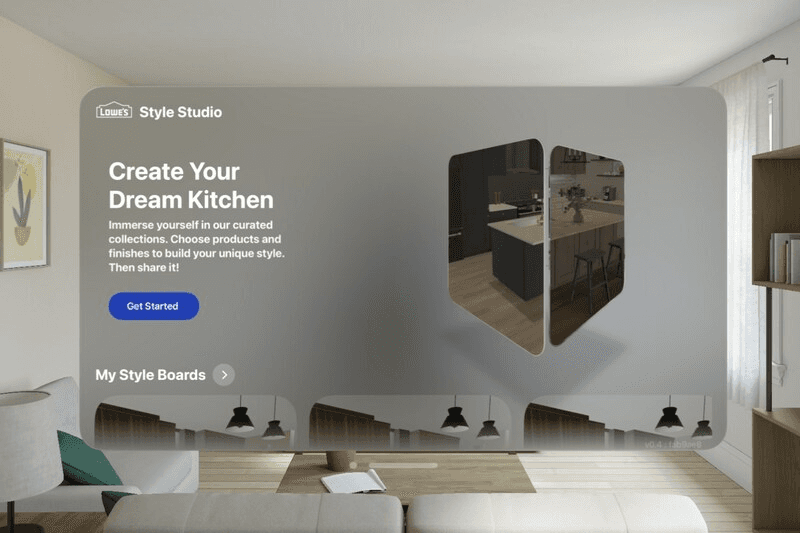 The Lowe's Style Studio app for the Apple Vision Pro allows customers to virtually test paint colors, flooring, and other home improvement products in their own homes before making a purchase.